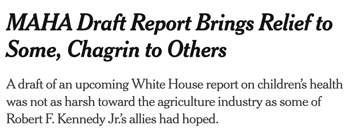 Because the leaked MAHA report is packed with good news but the pharma funded mainstream media thinks it goes much too far and activists think it doesn’t go far enough. That’s typical.